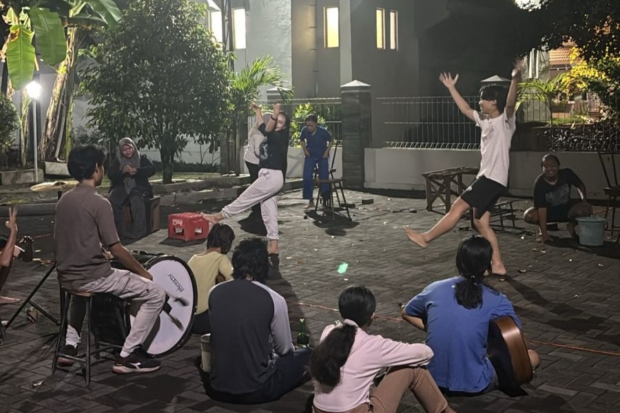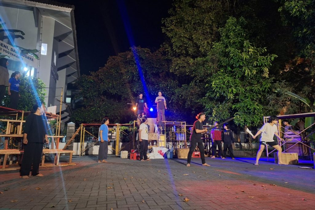 Anggota Unstrat melakukan rolling adegan 4 di samping Kantin Bunda, Sabtu (6/03/2025). Foto oleh Unstrat.